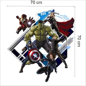 Adesivo de parede vingadores mod08 Medida: 70 x 70 cm As imagens anunciadas são ilustrativas Tamanho do adesivo O adesivo da foto parece grande