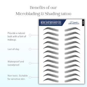 - Nossos adesivos de tatuagem de sobrancelha também são à prova d'água, para que você possa usá-los no chuveiro ou piscina sem problemas. A tatuagem é feita com uma combinação de traço de cabelo e sobrancelhas em pó, criando uma aparência natural com um toque de maquiagem.