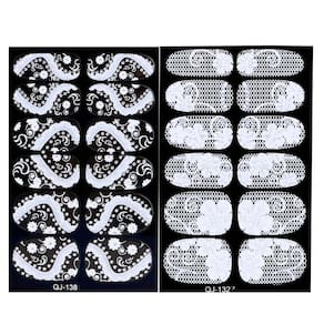 Estilo: Padrão de renda 3D Tamanho de cada folha: 9,1 x 5,6 cm Quantidade: 6 folhas (CONJUNTO) Não é necessária cola e mal descasca para remover. Muito fácil de usar em 5 etapas fáceis: selecione os tamanhos apropriados (corte no tamanho correto, se necessário). Retire com cuidado. Certifique-se de que a curva do adesivo toque a linha da cutícula. Pressione suavemente a linha central da placa ungueal em direção à borda livre. Durante essa etapa, retire o ar do adesivo para garantir um toque suave. Corte o excesso de adesivo e lixe as bordas suavemente para deixá-lo liso. Veja menos