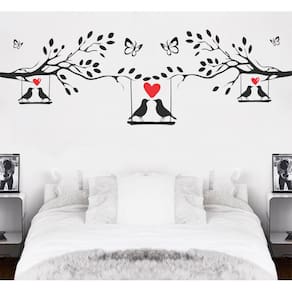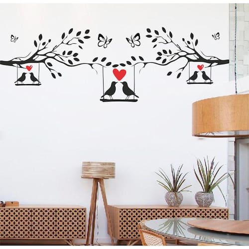 Adesivo decorativo de sala árvore com pássaros, borboletas e corações