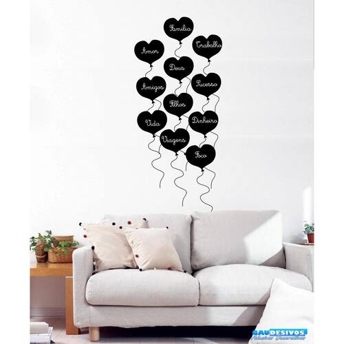 Adesivo decorativo de parede kit 11 etiquetas de corações a giz