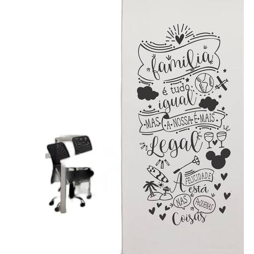 Renove a decoração da sua casa com o Adesivo Decoração De Parede Frase Família É Tudo Igual Linda! Esse adesivo é perfeito para dar um toque especial em qualquer ambiente, seja na sala, quarto, cozinha, escritório ou até mesmo nos vidros de box, janelas e portas.