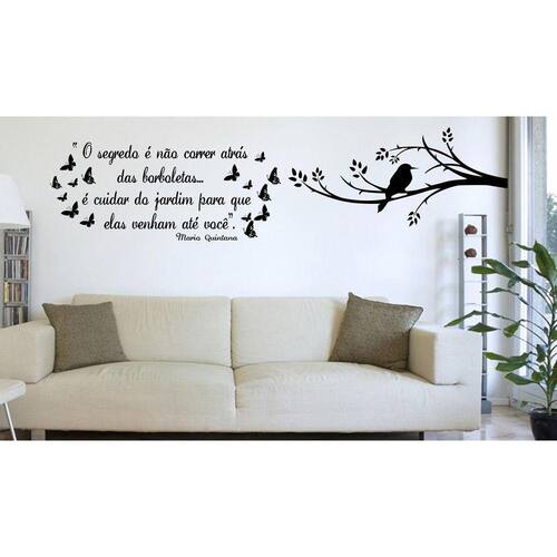 Adesivo decorativo de parede Adesivo decorativo de parede frase com galho e passaro Tamanho (alt.Xcomp.)97x109 cm DescriçãoDecore sua casa: ideal para sala, quarto, cozinha, moveis, escritório, vidros de box, janelas, portas, etc.Ótima qualidade: recortado eletronicamente em máquina de última geração.Ótimo acabamento: produzido em vinil de fácil aplicação, e pode ser removido a qualquer momento sem prejudicar a pintura ou a superfície aplicada Dica de aplicação : limpe o local com um pano úmido, certifique-se de retirar todo o pó da parede para melhor fixação do produto. Enviamos manual e temos video que ensina aplicar, de facil aplicação