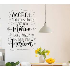 Adesivo decorativo de parede frase motivo para ser feliz Adesivo decorativo de parede Adesivo decorativo de parede frase motivo para ser feliz Tamanho alt.Xcomp. 70x47 cm Descrição Decore sua casa: ideal para sala, quarto, cozinha, moveis, escritório, vidros de box, janelas, portas, etc. Ótima qualidade: recortado eletronicamente em máquina de última geração. Ótimo acabamento: produzido em vinil de fácil aplicação, e pode ser removido a qualquer momento sem prejudicar a pintura ou a superfície aplicada Dica de aplicação : limpe o local com um pano úmido, certifique-se de retirar todo o pó da parede para melhor fixação do produto. Enviamos manual e temos video que ensina aplicar, de facil aplicação