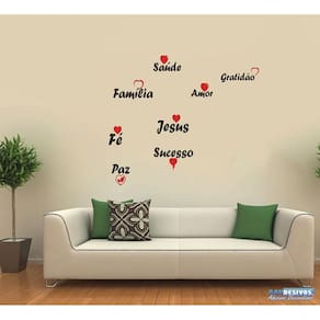 Adesivo decorativo de parede palavras, saúde, gratidão etc, e corações