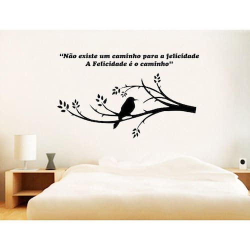 Adesivo decorativo de parede passaro no galho da arvore e frase