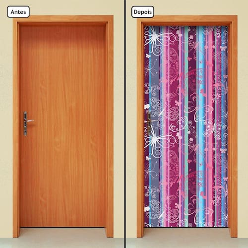 Adesivo Decorativo de Porta - Borboletas - Listras - Os Adesivos de Porta da Allodi foram feitos para transformar e dar mais vida aos ambientes, aplicados nas portas da sala, do quarto, dos corredores, dão uma cara nova ao seu ambiente, sem dor de cabeça e sem sujeira. - Fabricados em vinil adesivo de alta qualidade e em uma única peça(não utilizamos vinil promocional e nem enviamos em duas partes) não deixa emendas na colagem, garantindo maior qualidade e beleza no resultado final. - Produto de fácil instalação, enviado na medida padrão de 90cm x 210cm ele se adapta a todas as medidas de porta, bastando apenas remover as sobras de material ao final da colagem caso as medidas da sua porta sejam menores.
