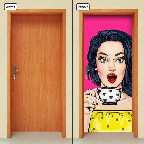 Adesivo Decorativo de Porta - Pin-up - Café - Os Adesivos de Porta da Allodi foram feitos para transformar e dar mais vida aos ambientes, aplicados nas portas da sala, do quarto, dos corredores, dão uma cara nova ao seu ambiente, sem dor de cabeça e sem sujeira. - Fabricados em vinil adesivo de alta qualidade e em uma única peça(não utilizamos vinil promocional e nem enviamos em duas partes) não deixa emendas na colagem, garantindo maior qualidade e beleza no resultado final. - Produto de fácil instalação, enviado na medida padrão de 90cm x 210cm ele se adapta a todas as medidas de porta, bastando apenas remover as sobras de material ao final da colagem caso as medidas da sua porta sejam menores.