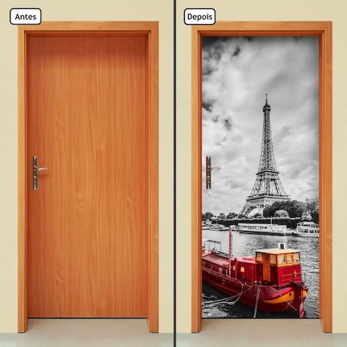 Adesivo Decorativo de Porta - Torre Eiffel - Os Adesivos de Porta da Allodi foram feitos para transformar e dar mais vida aos ambientes, aplicados nas portas da sala, do quarto, dos corredores, dão uma cara nova ao seu ambiente, sem dor de cabeça e sem sujeira. - Fabricados em vinil adesivo de alta qualidade e em uma única peça(não utilizamos vinil promocional e nem enviamos em duas partes) não deixa emendas na colagem, garantindo maior qualidade e beleza no resultado final. - Produto de fácil instalação, enviado na medida padrão de 90cm x 210cm ele se adapta a todas as medidas de porta, bastando apenas remover as sobras de material ao final da colagem caso as medidas da sua porta sejam menores.