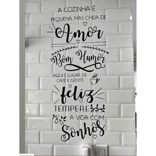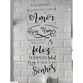 Adesivo decorativo, parede frase cozinha pequena mas cheia de amor