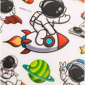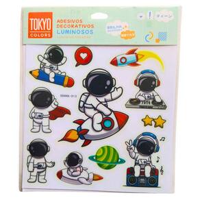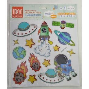01 cartela de adesivos Astronauta ColoridoManeiras de usar os adesivos:Espelhos;Janelas;Armários;Paredes lisas.Duração de até 4 horas após as luzes se apagarem.Recarrega rapidamente com luz.Instruções de uso:1- Limpe a superfície onde itens serão fixados;2- Retire os adesivos da cartela e pressione levemente sobre o local limpo.Este adesivo não apenas adiciona um toque especial à sua decoração, mas também brilha no escuro, criando um efeito mágico e fascinante durante a noite.Com um tamanho de cartela de 20 cm x 20 cm, ele é perfeito para aplicar em paredes, tetos ou qualquer superfície lisa, transformando qualquer ambiente em um verdadeiro cenário espacial.Ideal para quartos infantis, escritórios, ou qualquer lugar que precise de um pouco de magia e inspiração, o adesivo de astronauta e galáxia é fácil de aplicar e remover, sem danificar as superfícies. Ele proporciona uma atmosfera relaxante e sonhadora, perfeita para estimular a imaginação e os sonhos de pequenos e adultos.Deixe seu ambiente mais alegre e criativo com esse adesivo único, e transforme sua decoração com a magia do espaço. Cada detalhe do adesivo foi pensado para trazer a beleza e o mistério do universo para dentro da sua casa, permitindo que sua imaginação voe até as estrelas!Cartela de Adesivos-Luminosos-Brilha no Escuro-DecorativoMedidas: 25x20,5cmComposição: Plástico