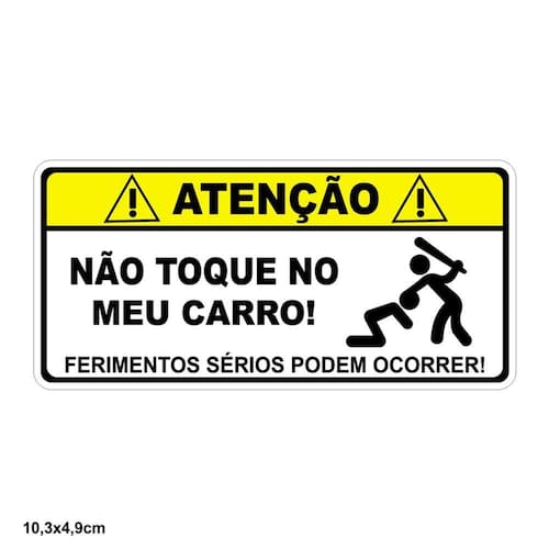 ADESIVO DECORATIVO SEM RESINA ATENÇÃO NÃO TOQUE NO MEU CARRO CARRO 10,3X4,9 CM
