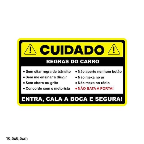 ADESIVO DECORATIVO SEM RESINA CUIDADO REGRAS DO CARRO CARRO 10,5X6,5 CM