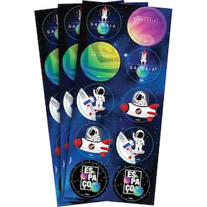 Adesivo Espacial, Adesivos Redondos, Decoração Galáxia, Tema Viajante da Galáxia, Adesivos para Festa Espacial, Lembrancinhas Temáticas, Comprar Adesivos Online, Decoração Espacial.