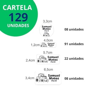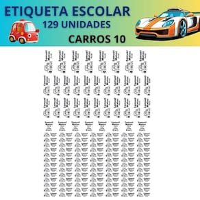 Adesivo Etiqueta Escolar Personalizado Vinil Carros 129UN - Cor: Carros 10