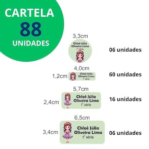 Adesivo Etiqueta Escolar Personalizado Vinil Princesa 88UN - Cor: PRINCESA 3