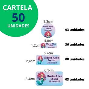 Adesivo Etiqueta Escolar Personalizado Vinil Sereia 50UN - Personagem: SEREIA 1