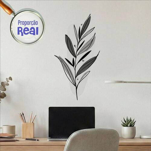 Adesivo Floral Boho Cinza Estilo Nórdico 31x60 Minimalista Mod.03