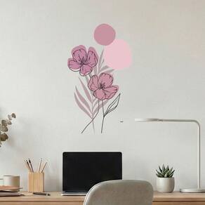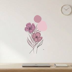 Adesivo Floral Boho Rosa Estilo Nórdico 35x60 Minimalista Abstrato