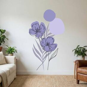 Adesivo Floral Boho Roxo Estilo Nórdico 88x150 Minimalista Abstrato