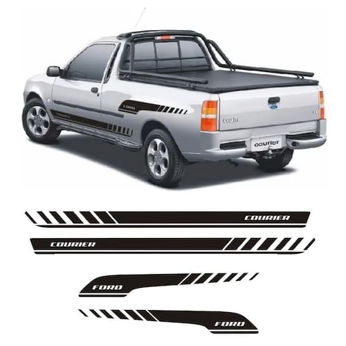 Adesivo lateral para ford courier fc4 faixa colante fita tuning cor: preto kit adesivo lateral em vinil automotivo com os dois lados portas e caçamba laterais modelo fc4 para ford courier em caso de dúvida confirme compatibilidade no campo perguntas ao vendedor