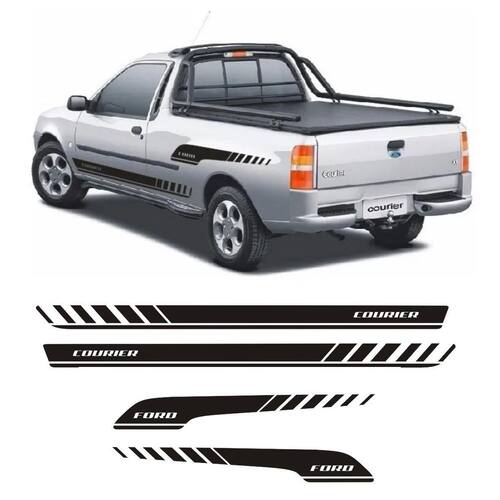 Adesivo lateral para ford courier fc4 faixa colante fita tuning cor: preto kit adesivo lateral em vinil automotivo com os dois lados portas e caçamba laterais modelo fc4 para ford courier em caso de dúvida confirme compatibilidade no campo perguntas ao vendedor