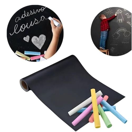 Adesivo Lousa Quadro Negro 1 Metro Papel Parede Contact Kit Completo Giz 1m X 45cm Preto Lavavel