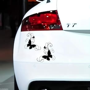 Adesivo para carro borboletas As imagens anunciadas são ilustrativas Tamanho do adesivo O adesivo da foto parece grande Então atenção: O modelo que está na foto não se refere ao tamanho do adesivo anunciado. deixamos o adesivo grande para que você possa visualizar melhor o produto que está comprando