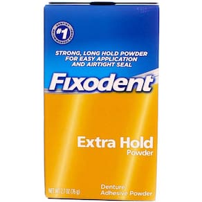 Pó adesivo para próteses dentárias Fixodent Extra Hold, 2,7 onças — Pó adesivo para próteses dentárias fixodente, retenção extra — 2,7 onças — Oferece um ótimo ajuste e uma vedação forte, fina e hermética — Fórmula em pó fácil de aplicar — 6 x Creme adesivo para dentaduras de proteção dupla Fixodent 40 g