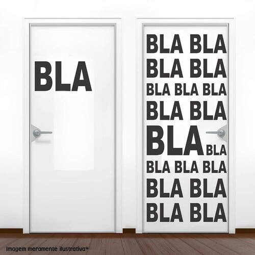Adesivo para porta blá blá As imagens anunciadas são ilustrativas Tamanho do adesivo O adesivo da foto parece grande Então atenção: O modelo que está na foto não se refere ao tamanho do adesivo anunciado. deixamos o adesivo grande para que você possa visualizar melhor o produto que está comprando Vantagens: - já vai recortado - fácil aplicação e sem sujeira, não precisa de cola. - acompanha manual impresso. - renovação do ambiente. É o fim das paredes brancas, sem vida Onde aplicar Em qualquer superfície lisa. Onde não aplicar Paredes úmidas, superfícies porosas, com relevo, com texturas, irregularidades ou com infiltrações. Local para aplicação: aplique onde sua imaginação mandar paredes, móveis, revestimentos, azulejos, tetos, janelas, Portas, vitrines, vidraças, , carros, notebook, banheiro, geladeira e muito mais. Marca: Lojinha Da Luc Adesivos Ean: 1070000018557
