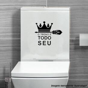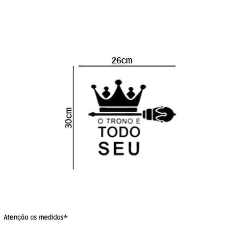 Adesivo para vaso sanitário o trono é todo seu Atenção as medidas Os adesivos decorativos são produzidos com material de alta qualidade. As imagens anunciadas são ilustrativas Tamanho do adesivo O adesivo da foto parece grande Então atenção: O modelo que está na foto não se refere ao tamanho do adesivo anunciado. deixamos o adesivo grande para que você possa visualizar melhor o produto que está comprando Material Vinil adesivo. É só destacar e colar Nossos adesivos são específicos para superfícies lisas, por isso se adequam a paredes, vidros, madeiras e demais superfícies sem texturas. Importante lembrar de conferir que o local para aplicação está devidamente limpo, sem poeiras, gorduras ou demais resíduos. Todos os nossos produtos são enviados com manual de instruções e dicas para aplicação. As imagens anunciadas são ilustrativas Pode haver variações na cor de acordo com as configurações do seu monitor. Confira todas as informações como medidas e quantidade na descrição do produto. Marca: Lojinha Da Luc