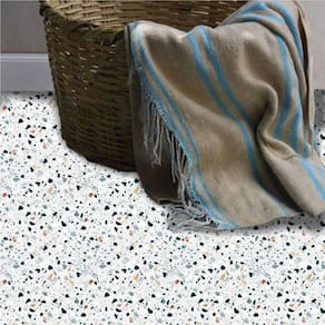 Especificações técnicas Marca: Colacomigo Modelo: Granilito Terrazzo Vinil Tamanho do rolo manta: 1,20 x 0,40 m Material: Vinil Autocolante Impresso em alta definição + laminação Aplicação: Piso