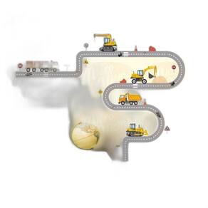 As medidas do adesivo são 133 cm x 60 cm, permitindo que você monte a pista do jeito que quiser. Com construções, tratores e caminhões, seu filho a poderá criar pistas com mais de 2 metros de extensão, proporcionando horas de diversão.