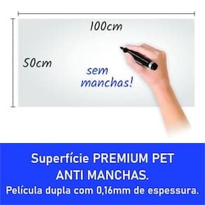 Medida 100cm x 50cm. Superfície premium pet anti manchas. Película dupla com 0,16mm de espessura.000 vezes Fácil de aplicar - destaque e cole Sem manchas - fácil de limpar sem deixar manchas fantasmas. Alto padrão de resistência a manchas. Alternativa a quadros caros - nosso adesivo é mais barato e durável e é mais fácil de aplicar. Não requer furos na parede. Ao contrário de outros modelos, nosso adesivo é enviado inteiro, em tubo de papelão rígido. Marca: Não Informado