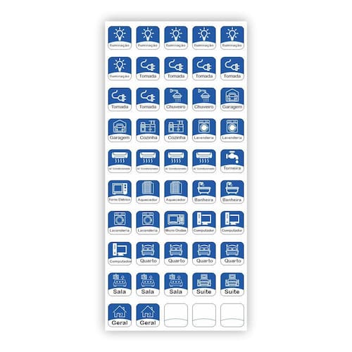 Adesivo Quadro Disjuntor Sinalização Energia Quadro De Força Medida de cada adesivo: 1,8 x 1,8 cm. A cartela contém 3 adesivos em branco para que possa ser escrito caso precise. A Cartela contém 50 adesivos sendo: Iluminação Tomada Chuveiro Garagem Cozinha Lavanderia Ar Condicionado Torneira Forno Elétrico Aquecedor Banheira Lavanderia Secadora Micro Ondas Computador Quarto Sala Suite Geral. Adesivos feitos em vinil e impressos com tinta eco-solvente não agride o meio ambiente . Não borram nem rasgam. Ean: 7898667236183