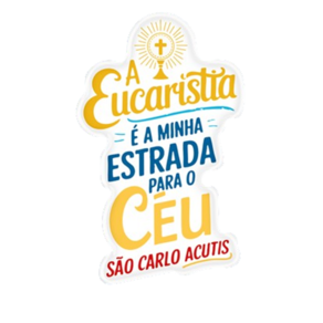Adesivo resinado com a frase de São Carlo Acutis:“A Eucaristia é a minha estrada para o Céu.”