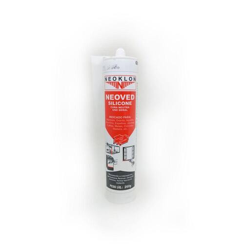 NEOVED Silicone Neutro é um adesivo selante 100% de silicone, vulcaniza com umidade do ar e em temperatura ambiente, torna-se uma borracha vedante e flexível neutro.