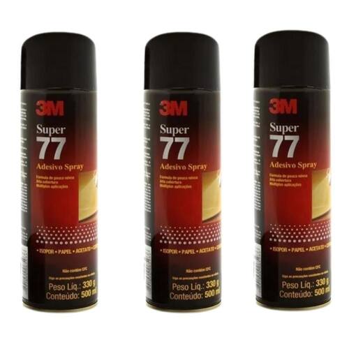 Kit 3 Adesivo Spray 77 330G 3M Cola Isopor Acetato Cortiça
