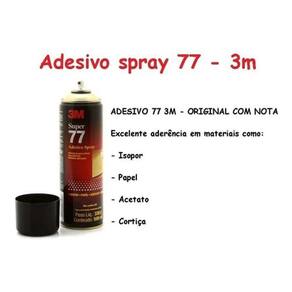 - O adesivo spray 77 da 3M é ideal para colagem de isopor, papel, papelão, cortiça, entre outros materiais leves.