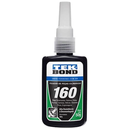 O fixador de rolamentos 160 com baixa viscosidade e alta resistência à desmontagem. Uma vez aplicado, impede a corrosão e vazamento do conjunto de fixação, é recomendado principalmente para fixação de peças cilíndricas como buchas, rolamentos, chavetas, hélices que necessitam de alta resistência à desmontagem. Elimina folga dentro de conjuntos já gastos. Marca: Tekbond Referência: Tekbond - 10191004300 Aparência visual : Líquido verde Viscosidade a 25C: 1500 a 2500 cps Densidade a 25C: 1,09 a 1,11 g/mL Ponto de fulgor TCC : 93 C Tempo de armazenamento à 20C: 18 meses Cura inicial: 20 minutos Cura total: 24 horas