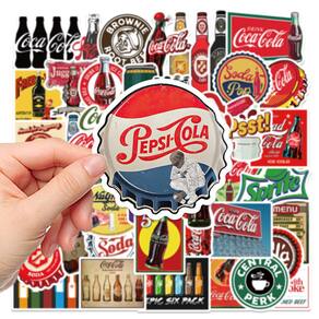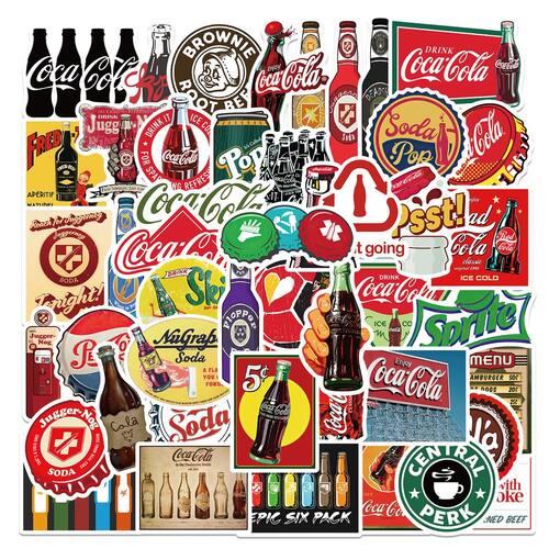 Adesivos: 50 unidades/lote, garrafas coloridas de coca-cola, vinil impermeável