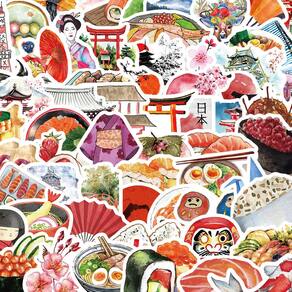 Adesivos: 64 unidades/lote, estilos de sushi japoneses, água, 5-7 cm