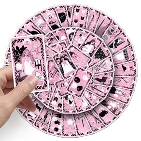 Adesivos, 78 peças de tarôs de vinil impermeáveis, pretos e rosas