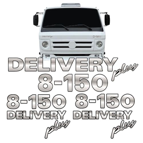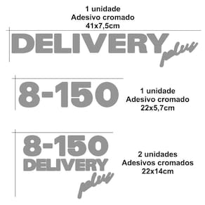 Adesivos 8-150 Delivery Plus Emblemas Lateral /capô CROMADO SEM RESINA Dimensões: 1 unidade 41x7,5cm 1 Unidade 22 x5,7cm 2 Unidades 22x14cm