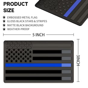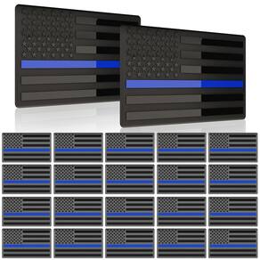 Pacote com 20 adesivos de metal 3D em relevo, linha azul fina, todos os adesivos pretos do emblema da bandeira americana, preto fosco, 12,7 x 7,6 cm, adesivos patrióticos da bandeira dos EUA para - O pacote inclui: Cada pedido inclui 20 adesivos de bandeira na orientação regular dos EUA, cada bandeira tem 12,7 cm x 7,6 cm - Bandeira 3D em relevo: Feito de material de liga de alumínio de alta qualidade, fundo preto fosco e linha azul fina pintada. Estrelas em relevo, listras, base preta fosca e linha azul fina vibrante fazem com que ele se destaque e sinta o artesanato imediatamente - Adesivo forte: Fita dupla face da marca superior na parte de trás do emblema para melhor aderência e durabilidade. Certifique-se de que a superfície alvo esteja limpa e seca com um pano ou lenço antes de aplicar - FEITO PARA DURAR: À prova de intempéries, à prova de sol, resistente ao desbotamento UV, com garantia de aderência por um longo tempo. - Ampla aplicação: utilizado em carros, carrinhos de golfe, SUV, tanques, motocicletas, laptops, geladeiras, mostrando alguns apoios ao nosso policial com um decalque em seus carros!