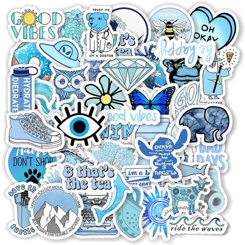 Adesivos Aesthetics Blues em vinil impermeável 50 unidades/lote de 5 a 7 cm