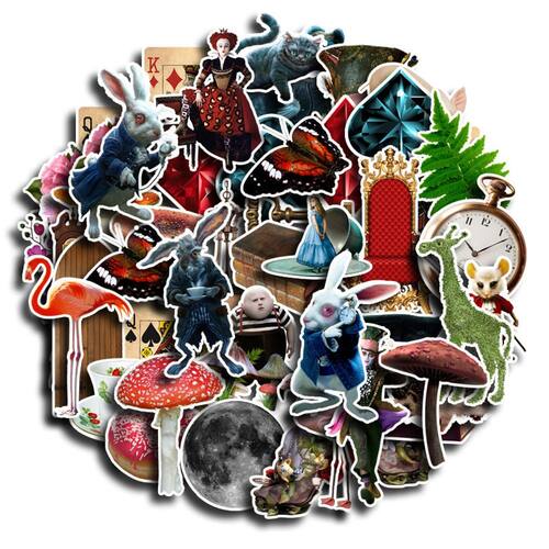Adesivos Alices in Wonderlands em vinil impermeável 45 unidades