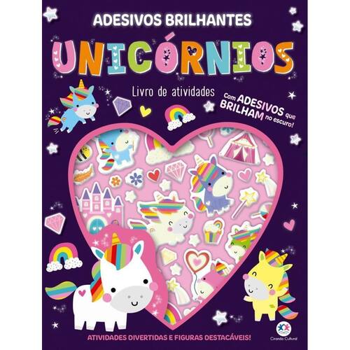 Adesivos Brilhantes Unicornios Embarque no reino dos unicórnios com este livro de atividades mágico Há caminhos para percorrer, palavras e imagens para encontrar e muito mais. Divirta-se também com adesivos que brilham no escuro e figuras destacáveis para montar e brincar.