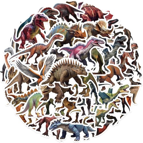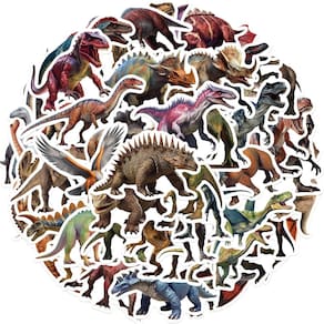 Material de vinil premium: esses 50 adesivos de vinil de alta qualidade são à prova d'água, duráveis e projetados para durar, perfeitos para personalizar seus pertences, como laptops, garrafas de água, skates e malas. Tema de dinossauro jurássico: apresenta vários dinossauros icônicos, como T-Rex, Triceratops, Pterodáctilo e muito mais, em divertidas ilustrações de desenhos animados, tornando-os a escolha perfeita para amantes de dinossauros e crianças de todas as idades. Perfeitos para projetos de bricolage: esses adesivos são ótimos para personalizar itens como cadernos, malas, guitarras e muito mais, oferecendo uma maneira criativa de adicionar um toque pessoal aos seus pertences. Fácil de aplicar e remover: os decalques de vinil são fáceis de descascar e colar em qualquer superfície limpa e lisa. Eles também são removíveis sem deixar resíduos pegajosos, o que os torna ideais para decoração temporária. Ótimos para crianças e adolescentes: esses adesivos divertidos e coloridos de dinossauros são perfeitos como recompensa para crianças, como prêmios em sala de aula ou para crianças que amam dinossauros e querem expressar sua criatividade.
