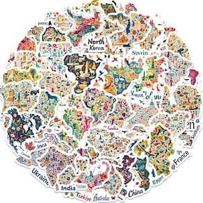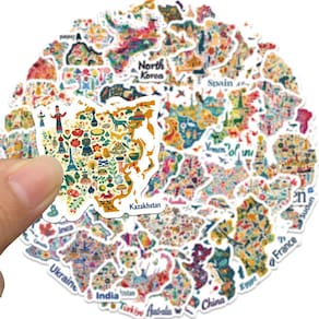 Material: papel e vinil Peso: 30-60 g Tamanho: 3-6 cm Quantidade: 50 unidades50 adesivos nacionais exclusivos — apresenta silhuetas de mapas coloridos com ícones culturais e pontos turísticos de todo o mundo, perfeitos para aprender geografia e celebrar a diversidade global. Vinil impermeável durável — Feitos de material de vinil premium, esses adesivos são à prova d'água, resistentes a rasgos e duradouros, ideais para decoração interna e externa. Educacional e divertido — Ótimo para crianças, professores e viajantes usarem como ferramentas de aprendizado, recompensas em sala de aula ou projetos criativos de bricolage com temas de viagens. Fácil de descascar e colar — O design pré-cortado os torna simples de descascar, colar e reposicionar sem deixar resíduos pegajosos nas superfícies. Decoração versátil — perfeita para laptops, diários, álbuns de recortes, malas, garrafas de água, skates, capas de telefone e projetos escolares.